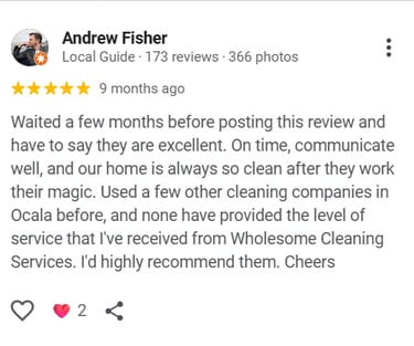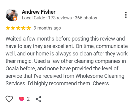 At Wholesome House Cleaning Services, we treat your home like our own, delivering spotless results every time.